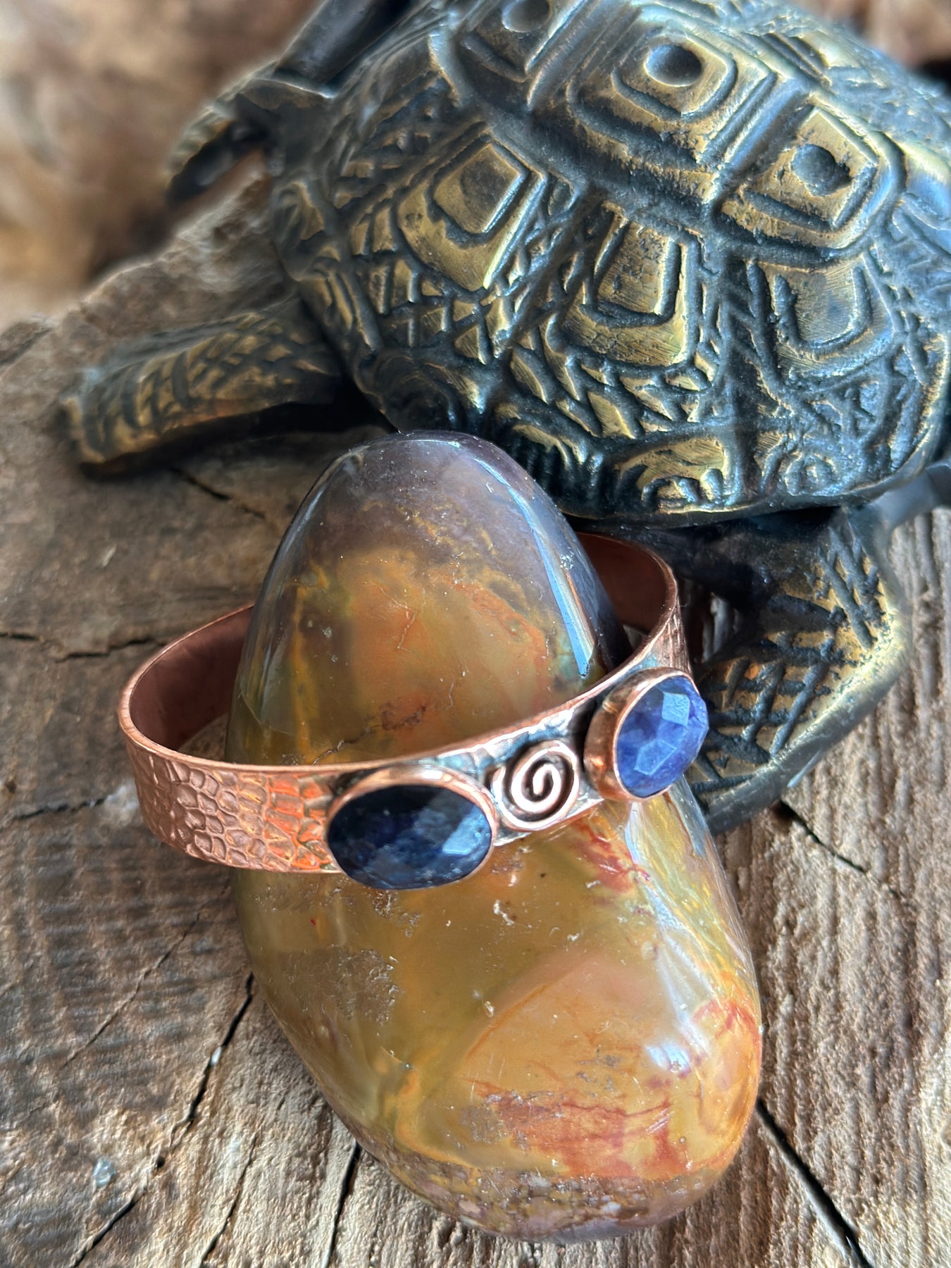 El Yapımı Lapis Lazuli Spiral Bakır Bileklik